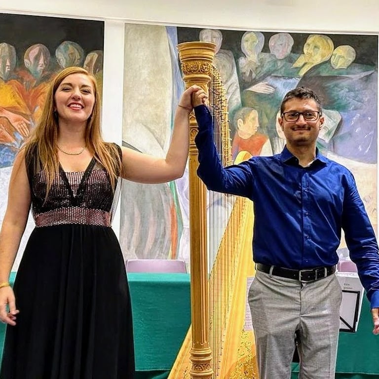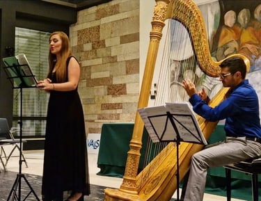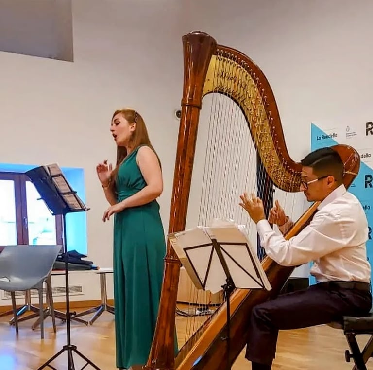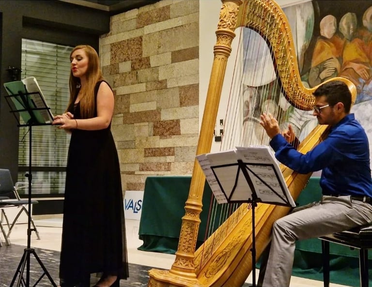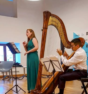Duo Mediterranea brings together Claudia’s clear, expressive voice and Antonio’s refined harp artistry in a musical journey rooted in the classical tradition.